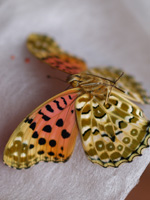 | これでわたしのツマグロヒョウモン観察日記はおしまいです。昨年の暮れからいろいろな経験をさせてもらいましたが、一番うれしかったことは、第一号の太郎が元気に飛び立っていってくれたこと。そして一番悲しかったことは、もちろんなな子が飛べなかったことです。 |