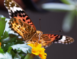 わたしのツマグロヒョウモン観察は、我が家のベランダにやってきた、この1匹のきれいな蝶から始まりました。それまで昆虫というものにあまり興味を示さなかったのですが。それが何故?かというと、やはり相方の影響が強いのかもしれません。相方は大の昆虫好き。それに、こんなきれいな蝶あまり身近にいませんでしたよ。(正直言うと興味がなかったからよく見ていなかったのかもしれませんが)。一目で魅かれてしまいました。 |