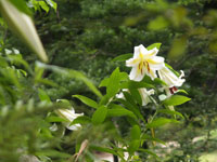 | 春には、梅、桜やつつじで庭内は彩られる。初夏になると、清楚な紫の藤や紫陽花、花菖蒲、すいれん、蓮の花が見事だ。また、庭内のいたるところに白百合やオレンジのユリが咲いていて、高貴な香りを漂わせていた。 |