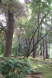 | 中庭にたたずむ樹齢100年?とも思われる松の木。強い陽射しをさえぎってくれる。 |