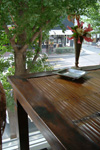| 美術館近くのカフェでお茶。窓の外は外苑西通り(通称:プラチナ通り)。 |