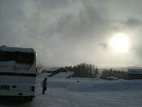| 午前中多少雪がちらついたが、吹雪にはならなかったのでよかった。仲間はスキーを楽しんだが、我々は散歩したり写真を撮ったりお土産を買ったり。あちらこちらにツララが。東京では最近めっきり見られなくなったので新鮮だった。 |
